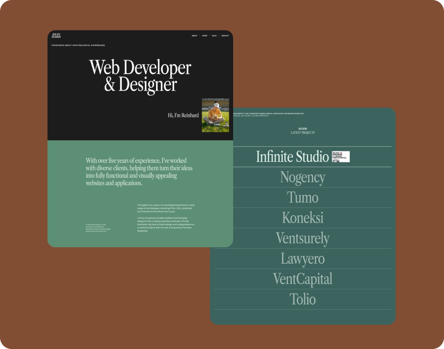 With an artfully laid-out structure, components, and sections that show professionalism yet let your unique story shine. From smooth navigation to artistic call-to-action elements, Reinhard is sure to provide a viewing experience that is both smooth and captivating to viewers.