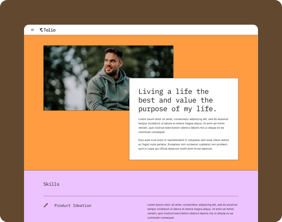 Not only that, Tolio is an easily customizable pre-built template that offers a wide range of colors, sections, components, and layouts. It excels in optimized speed and performance, ensuring a fully responsive experience. With Tolio, creating impressive websites for your customers or clients becomes effortless, saving you valuable time compared to building from scratch. Its solid foundation provides a reliable framework for your projects.
